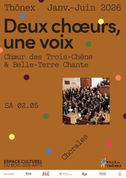Deux choeurs, deux univers, une même passion pour le chant. Le choeur des Trois-Chêne et Belle-Terre Chante unissent leurs voix pour une soirée placée sous le signe de l'émotion et du partage. Leurs répertoires se répondent, se complètent et se mêlent pour créer une palette sonore riche et vibrante.