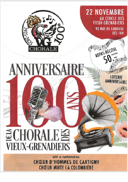 Concert du Choeur d'homme de Cartigny 100èm des Vieux Grenadiers Chorale de la Colombière
